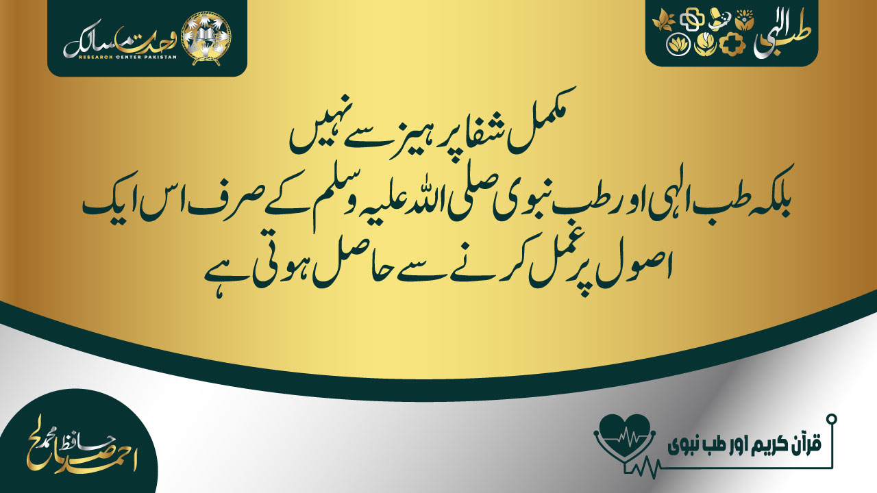 ہر بیماری سے مکمل شفا پرہیز سے نہیں بلکہ طب الہی اور طب نبوی صلی اللہ علیہ وسلم کے صرف اس ایک اصول پر عمل کرنے سے حاصل ہوتی ہے ۔