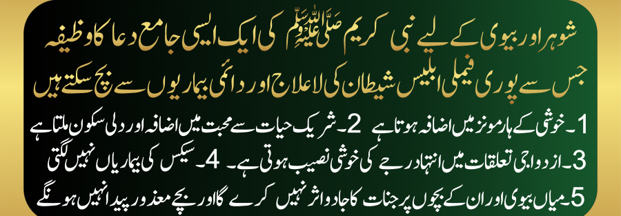 :شوہر اور بیوی کے لیے نبی کریم ﷺکی ایک ایسی جامع دعا کا وظیفہ جس سے پوری فیملی ابلیس شیطان کی لاعلاج اوردائمی بیماریوں سے بچ سکتی ہیں