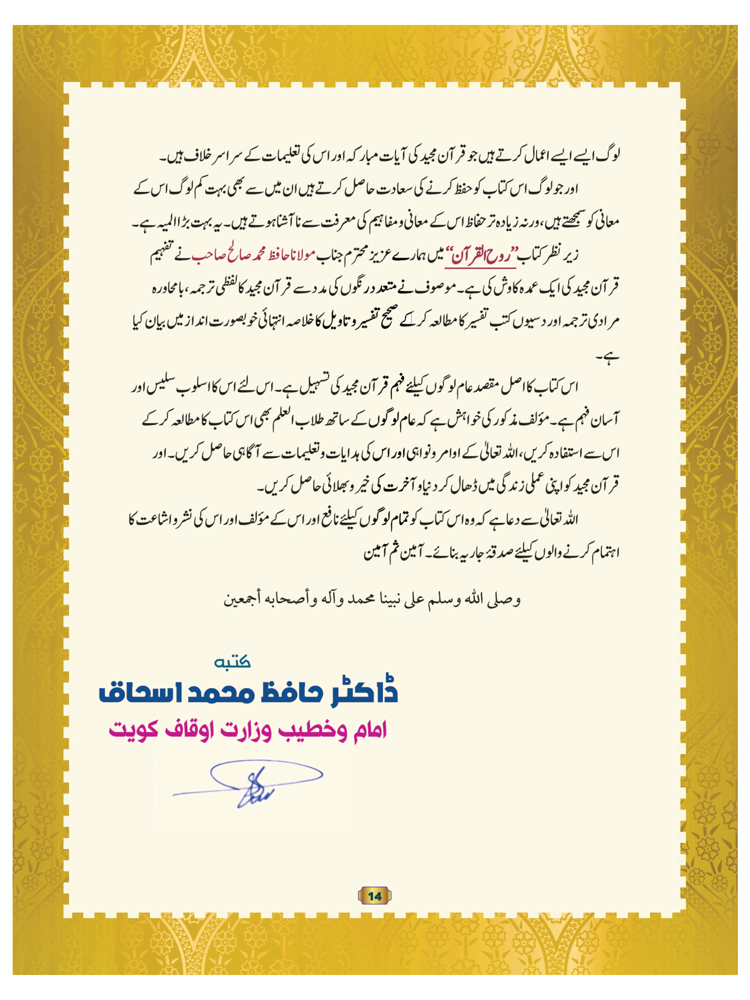 زیر نظر کتاب ” روح القرآن “ میں ہمارے عزیز محترم جناب مولانا حافظ محمد صالح صاحب نے تفہیم قرآن مجید کی ایک عمدہ کاوش کی ہے۔