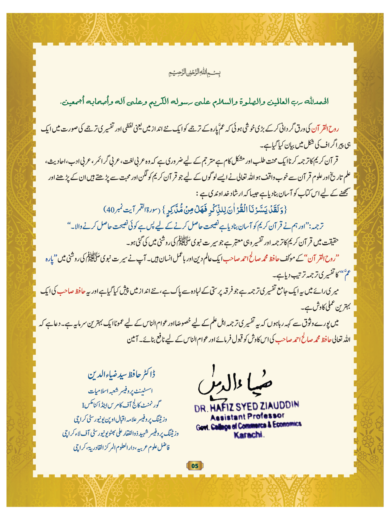 Assistant Professor, Department of Islamic Studies, Government College of Commerce and Economics